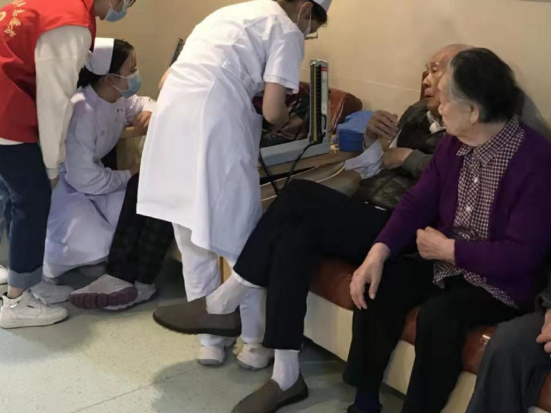 揭牌仪式结束后,杨耀防一行参观考察了颐和·赛城湖康养中心的功能设置,看望了入住的老人们。护理学院红细胞党团服务队还组织了“重阳情,初心行”的重阳节敬老活动,以义诊和文艺表演形式为康养中心的老人们带去健康和快乐。